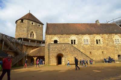 Le plus gros changement qui m'a sauté aux yeux en arrivant, c'est le parking avec ses allées goudronnées et les nombreux panneaux solaire. Le 21ème siècle vient d'arriver au chateau du 13ème siècle!!