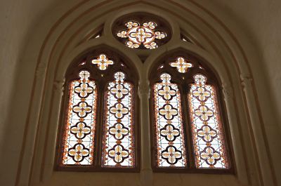 La fenêtre de la chapelle qui était en travaux chez les menuisiers il y a 2 ans est terminée et en place avec son vitrail, et la décoration de la chapelle a été améliorée par 2 fresques sur les murs.